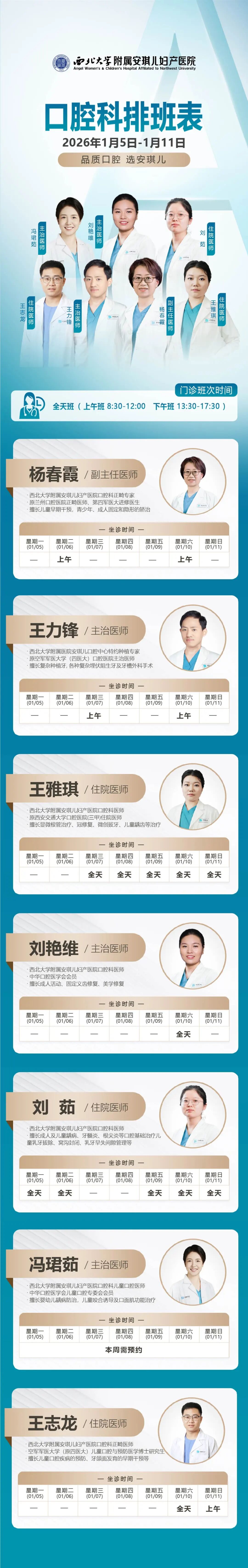 西安安琪儿妇产医院(1月5日至1月11日)专家坐诊时间表