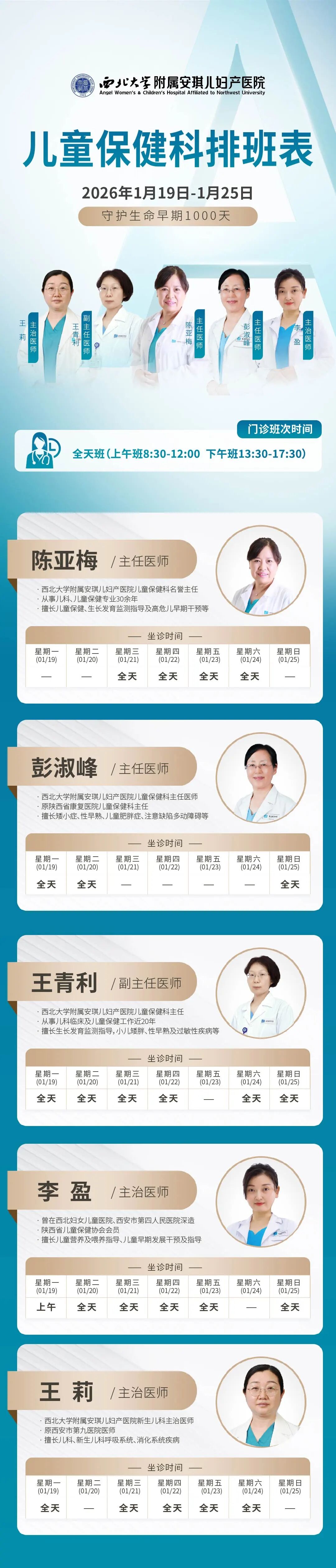 西安安琪儿妇产医院(1月19日至1月25日)专家坐诊时间表
