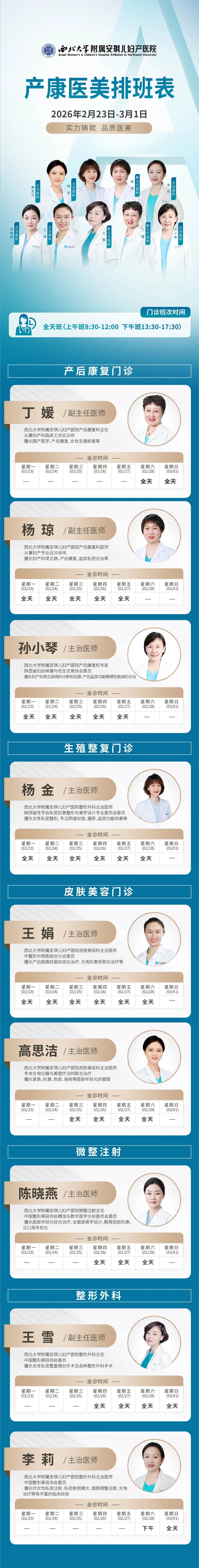 西安安琪儿妇产医院(2月23日至3月1日)专家坐诊时间表